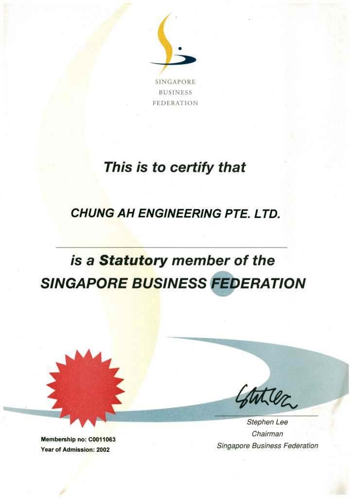 2002: Admitted to the Singapore Business Federation as a Statutory Member.