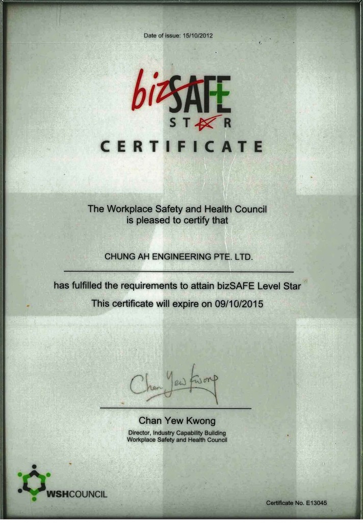 2012: Achieved bizSAFE Level Star certification from the Workplace Safety and Health Council.